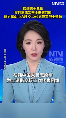 接迎第十三批在韩志愿军烈士遗骸回国,韩方将向中方移…