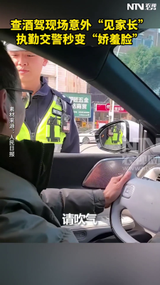 查酒驾现场意外“见家长”,执勤交警秒变“娇羞脸”