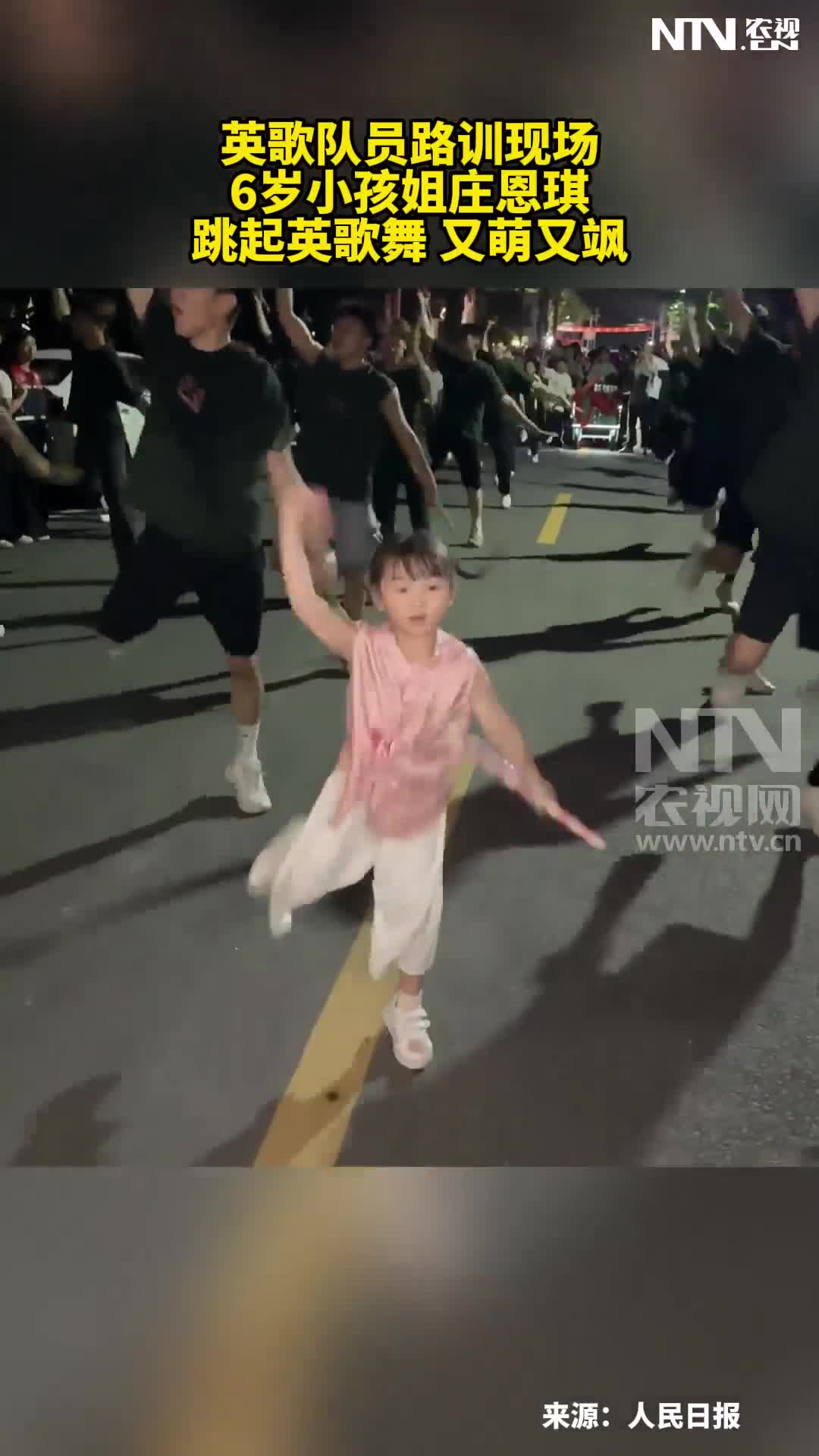 英歌队员路训现场6岁小孩姐庄恩琪跳起英歌舞 又萌又…