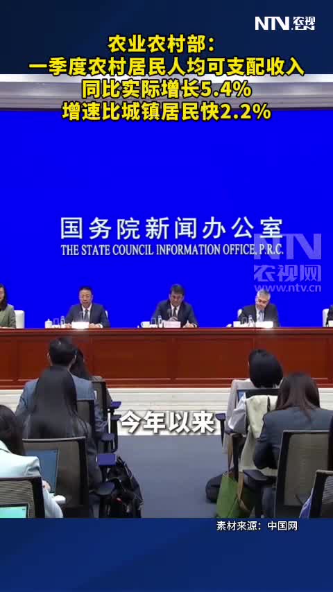 农业农村部:一季度农村居民人均可支配收入同比实际增…