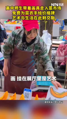 高中师生带着画具走入菜市场,免费为菜农手绘价格牌,…