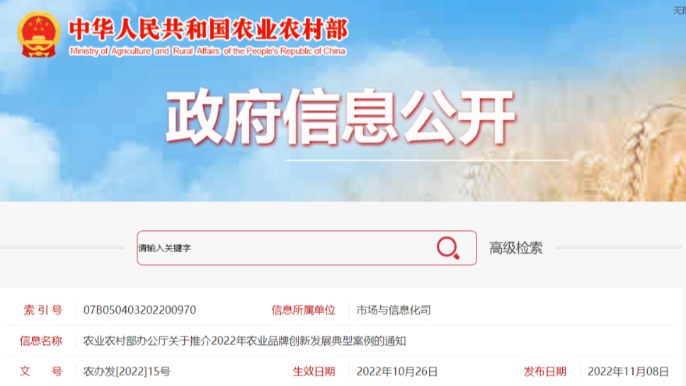 官方推介!2022年农业品牌创新发展典型案例发布