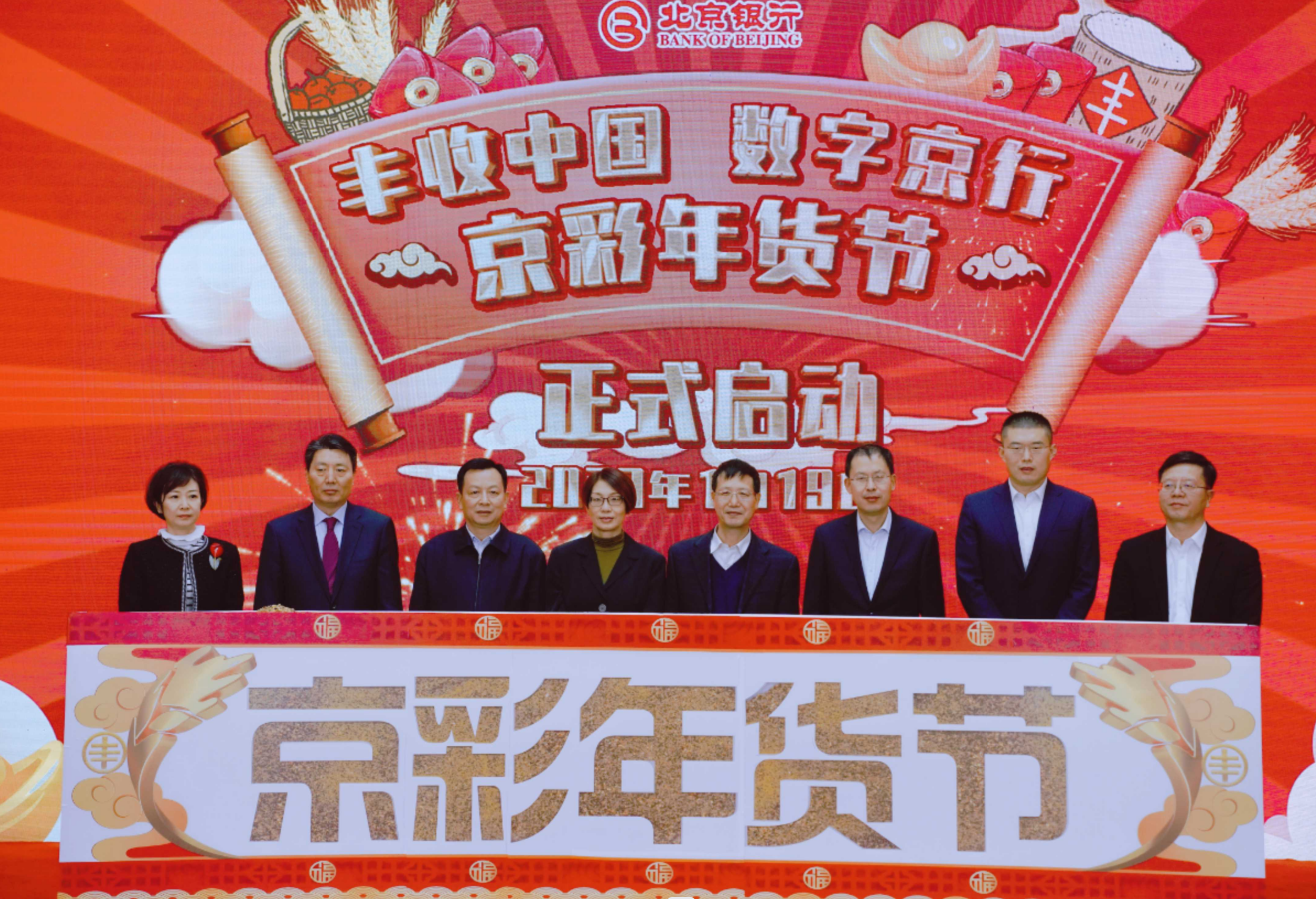 2023年1月19日,“丰收中国 数字京行”京彩年货节开幕式在北京坊劝业场隆重举行。本次活动由北京银行主办,中国农业电影电视中心承办,北京坊提供支持。中国人民银行营业管理部巡视员梅国辉,北京市地方金融监督管理局党组成员、副局长赵维久,农业农村部办公厅二级巡视员王先锋,北京市西城区人民政府党组成员、副区长李翰阳,中国农业电影电视中心副主任庞博,北京银行党委委员、监事长曾颖,北京银行副行长王健出席开幕式,北京金融街服务局、北京市西城区商务局、西城区委大栅栏街道、中国人民银行营业管理部、中国人民银行数字货币研究所相关领导莅临指导。