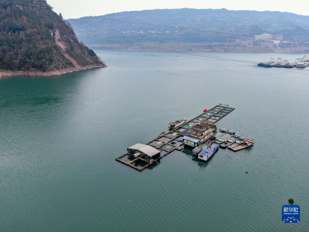 这是三峡库区珍稀鱼类驯养基地(2022年2月25日摄,无人机照片)。新华社记者 唐奕 摄