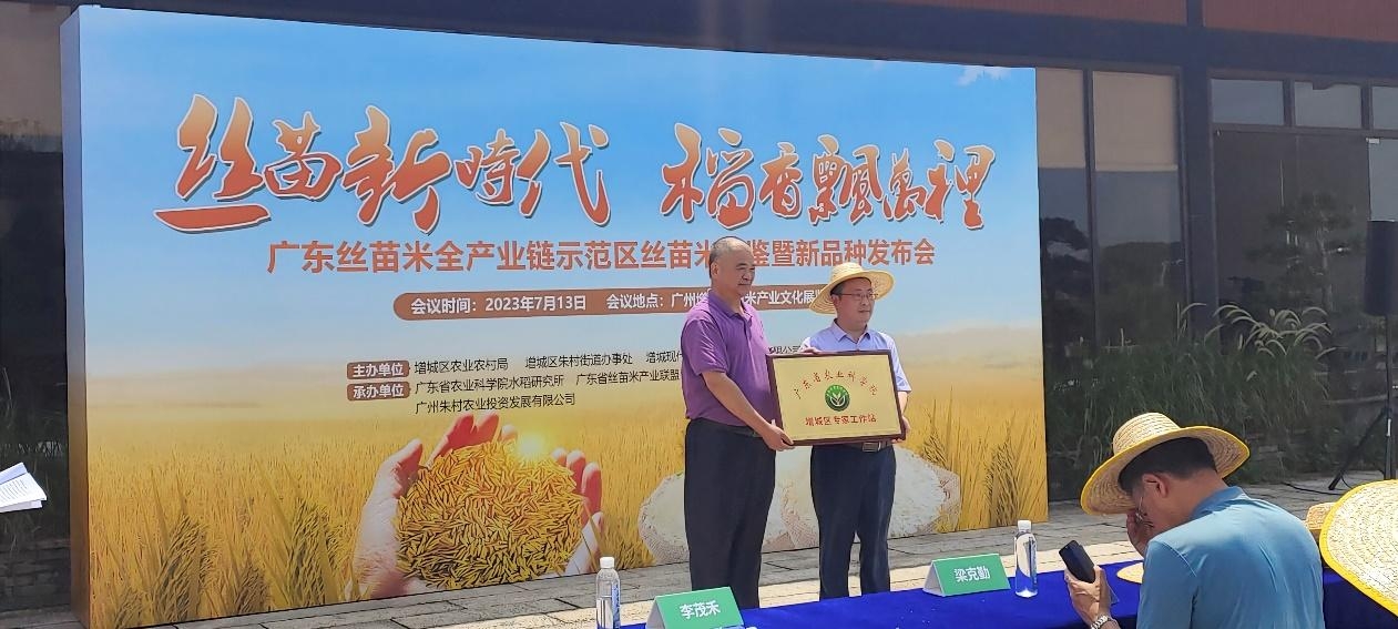 在广东省乡村振兴政策大力支持下,基于广东省农业科学院和增城农投深厚的合作基础,增城现代农业投资发展集团有限公司在增城区建立了广东农业科学院增城丝苗米专家工作站。活动现场,广东省农科院曾祥山副主任给增城农投崔洪强副总经理授专家工作站牌匾。