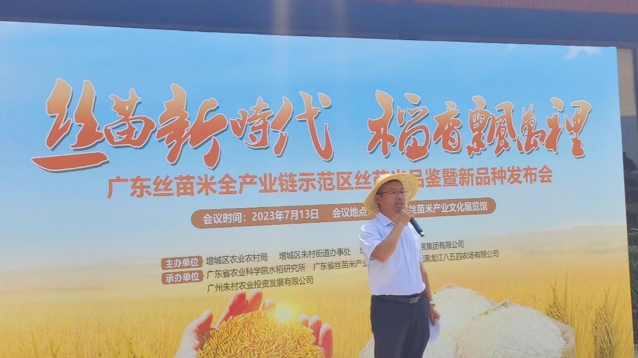 活动由增城区农业农村局总农艺师李茂禾主持:“夏日金黄,丝苗飘香。目前,我区早稻已进入成熟收割时节。今天,我们在丝苗米发源地举办主题为‘丝苗新时代 稻香飘万里’丝苗米品鉴及新品种发布会,目的是通过现场观摩丝苗米新品种新技术、品鉴丝苗稻米等活动,筛选适合我区种植的优质丝苗米品种,从而达到优中选优,打造增城丝苗米品牌,推动增城丝苗米全产业链高质量发展的目的。”