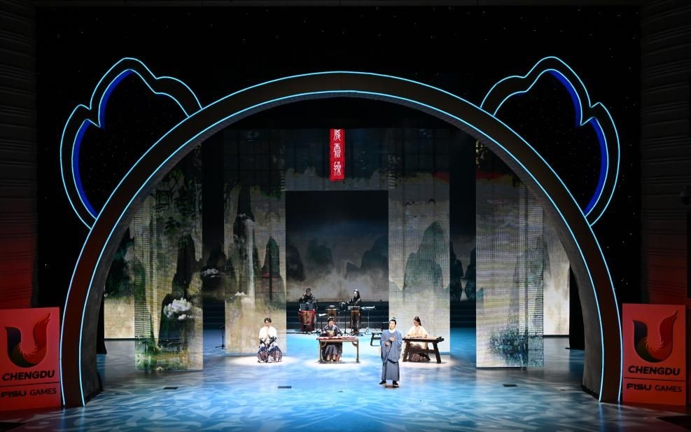 8月1日,“大音希声”古琴音乐晚会在成都大运村艺术中心大剧场举行,来自成都古琴文化学会和梓又雅乐团的演奏者为观众带来精彩表演。本场活动是在大运村举办的“Be Together”主题系列晚会之一。新华社记者蔡湘鑫摄