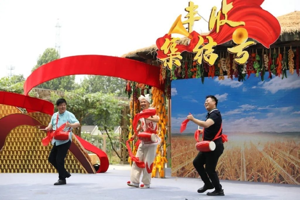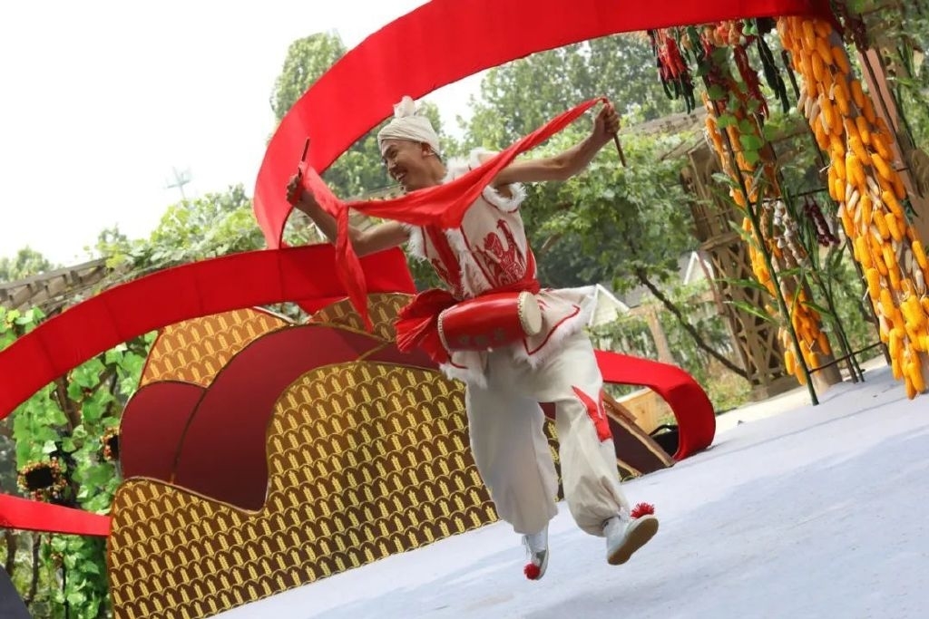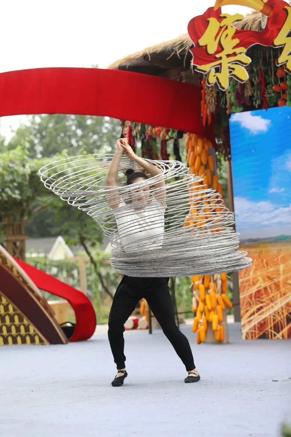 打着腰鼓来到了《丰收集结号》的舞台上。
